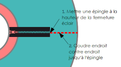 5. Coudre la fermeture éclaire (pour plus de facilité bâtir la fermeture éclaire, c'est à dire : faire quelques points larges à la main, coudre à la machine et découdre uniquement le points faits à la main).